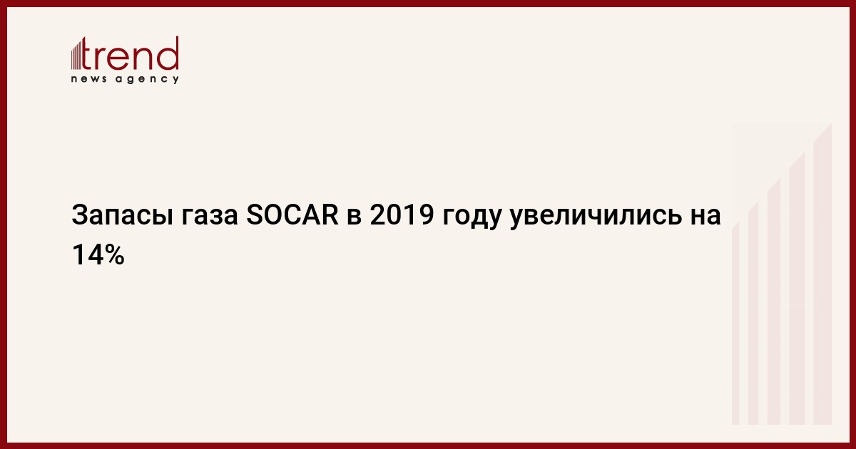 БАКУ/Trend/ - Общие подтвержденные запасы газа SOCAR в 2019 году составили 99,486 миллиардов кубометров, что по сравнению с показателем 2018 года на 13,7 процентов больше.