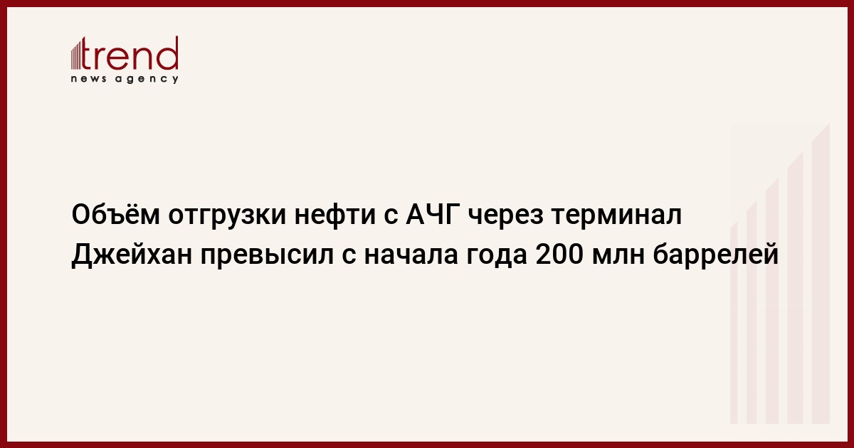 С начала 2020 года с нефтяного терминала Джейхан были отгружены 266 танкеров с нефтью с АЧГ (около 200,7 миллиона баррелей нефти).