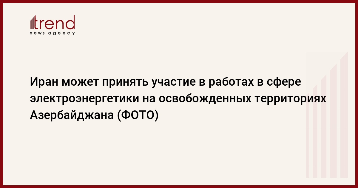 БАКУ /Trend/ - Иранские компании могут принять участие в восстановительных работах в сфере электроэнергетики на освобожденных территориях Азербайджана.