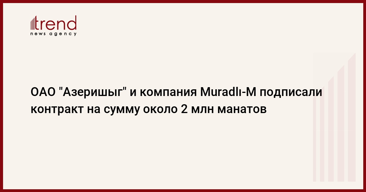 БАКУ /Trend/ - ОАО "Азеришыг" и ООО "MURADLI-M" подписали контракт на сумму 1,824 миллиона манатов.