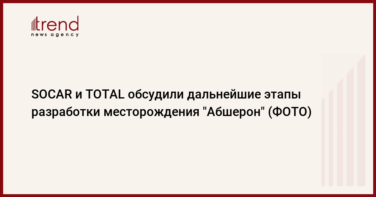 Отметим, что разработка месторождения ”Абшерон" осуществляется Совместной операционной компанией Absheron Petroleum (JOKAP). Акции операционной компании разделены между компаниями SOCAR Absheron (50 процентов) и TOTAL E&P Absheron (50 процентов).