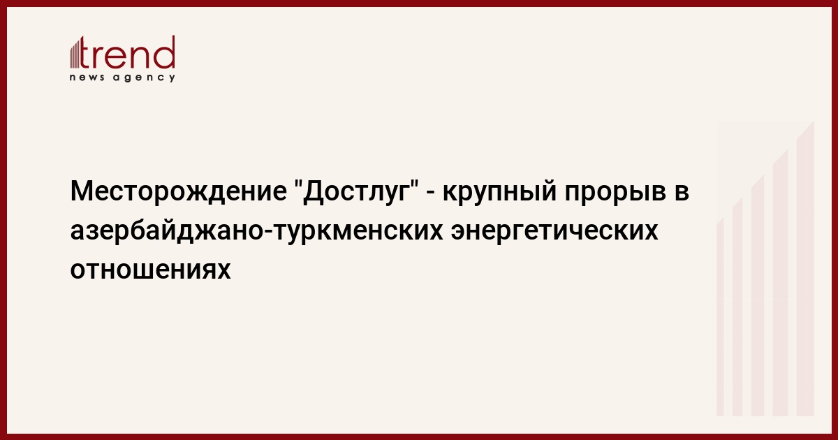 БАКУ /Trend/ - Соглашение по месторождению "Достлуг" является крупным прорывом в азербайджано-туркменских энергетических отношениях, заявил Trend специалист по энергетической безопасности Джон Робертс.