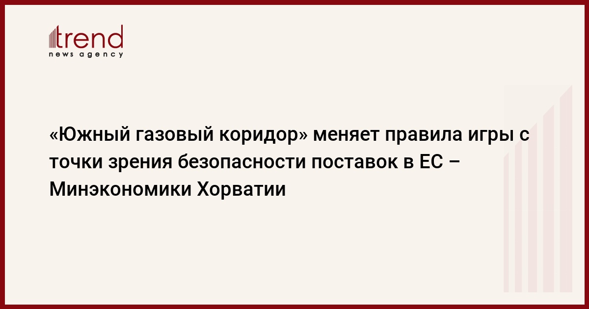 БАКУ/Trend/ - "Южный газовый коридор" меняет правила игры в обеспечении безопасности поставок в Европу, сказали Trend в Министерстве экономики и устойчивого развития Хорватии.