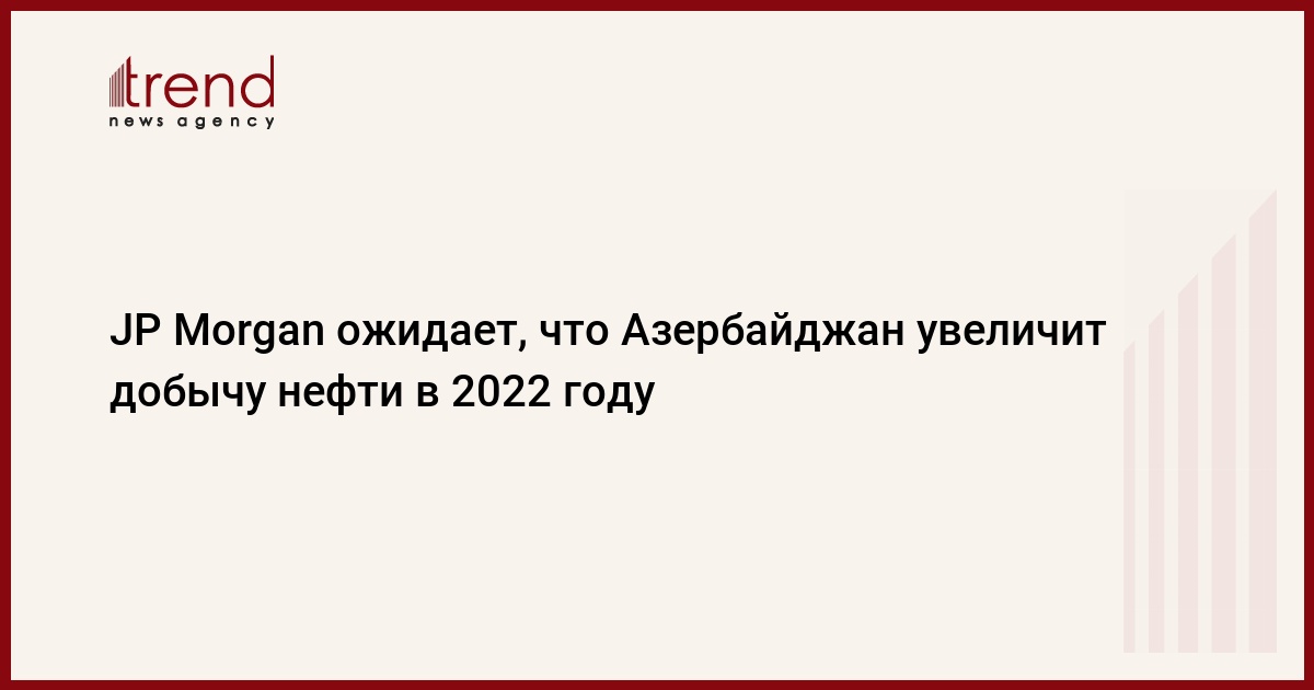 В отчете JP Morgan говорится, что в январе 2022 года в Азербайджане в сутки будет добываться 642 тысячи баррелей, в феврале – 643 тысячи баррелей, в марте – 638 тысяч баррелей, в апреле – 643 тысячи баррелей, в мае – 636 тысяч баррелей, в июне – 640 тысяч баррелей, в июле – 638 тысяч баррелей, в августе – 636 тысяч баррелей, в сентябре – 639 тысяч баррелей, в октябре – 631 тысяча баррелей, в ноябре – 634 тысячи баррелей и в декабре – 635 тысяч баррелей.