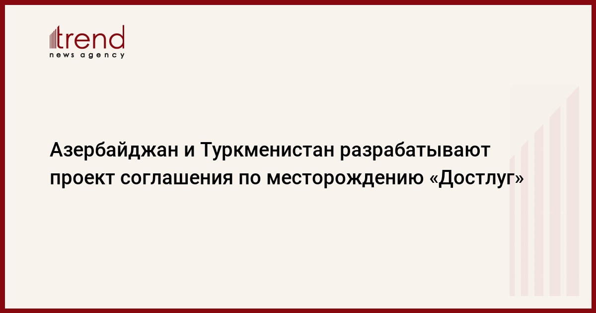 БАКУ /Trend/ - Азербайджан и Туркменистан разрабатывают проект соглашения по месторождению «Достлуг» на Каспии, сообщает Trend в пятницу со ссылкой на «Туркменистан Сегодня».