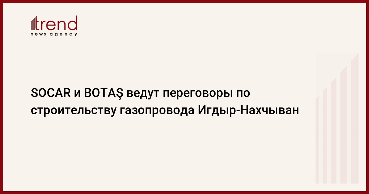 БАКУ /Trend/ - Государственная нефтяная компания Азербайджана (SOCAR) и турецкая BOTAŞ ведут переговоры по строительству газопровода Игдыр-Нахчыван (между Турцией и Азербайджаном).