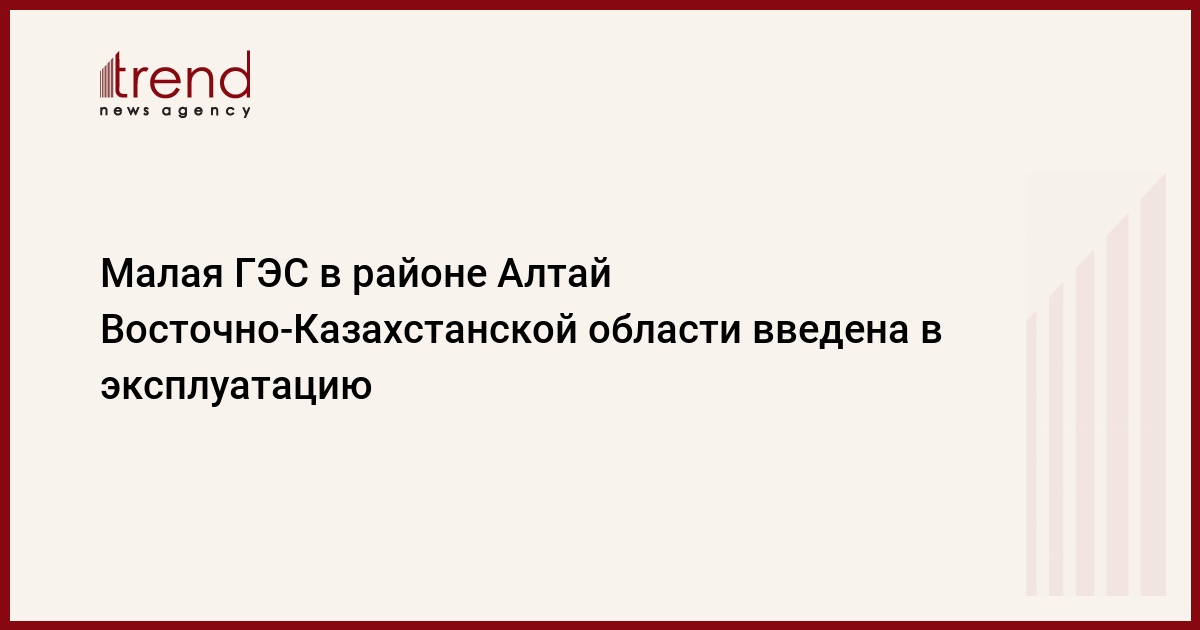 В июле 2021 года был произведен коммерческий ввод в эксплуатацию малой Тургусунской гидроэлектростанции (ГЭС) в районе Алтай Восточно-Казахстанской, передает Trend со ссылкой на МИА «Казинформ».