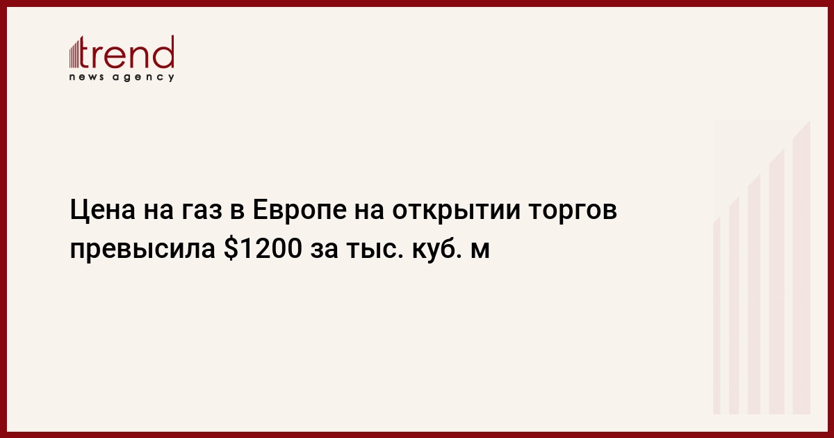 Цена ноябрьского фьючерса на хабе TTF в Нидерландах по состоянию на 9:00 установилась на отметке $1224 за тыс. куб. м, или €103 за МВт·ч (исходя из текущего обменного курса евро к доллару, цены на ICE представлены в евро за МВт·ч). При этом, по состоянию на 9:08, цена скорректировалась до $1165 за тыс. куб. м, или €98 за МВт·ч.