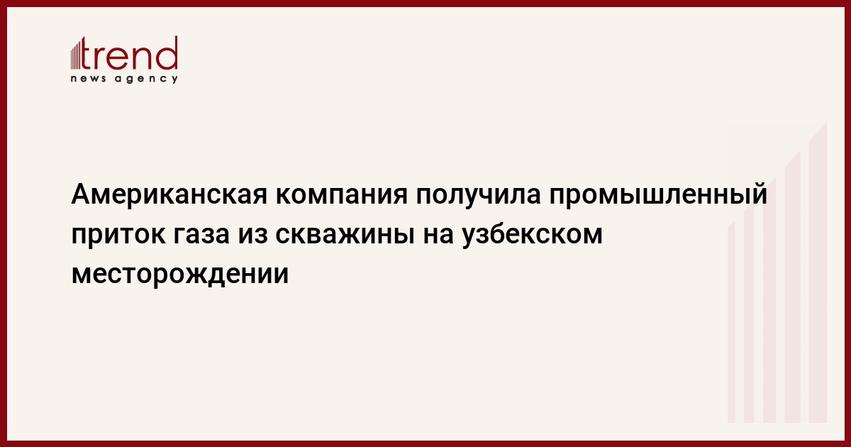 БАКУ /Trend/ - Американская Epsilon Development Company LLC получила 13 октября промышленный приток газа из скважины №1 на месторождении "Талимаржон" в Узбекистане после завершения ее капремонта, передает Trend со ссылкой на пресс-службу компании.