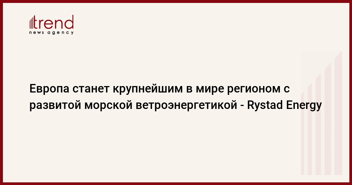 БАКУ /Trend/ - К 2030 году Европа станет крупнейшим в мире регионом с морской ветроэнергетикой, суммарная установленная мощность которой составит 119 гигаватт, сообщает Trend со ссылкой на норвежскую консалтинговую компанию Rystad Energy.
