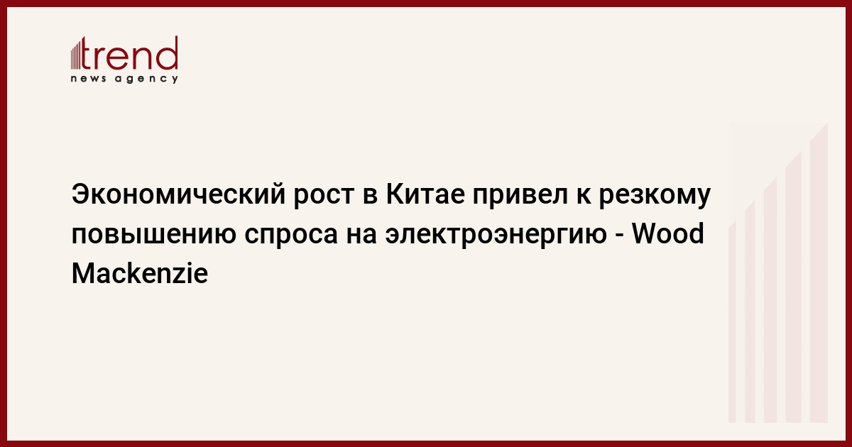 БАКУ /Trend/ - Экономический рост в Китае более чем на 8 процентов привел к резкому повышению спроса на электроэнергию, сообщает в понедельник Trend со ссылкой на международную консалтинговую компанию Wood Mackenzie.