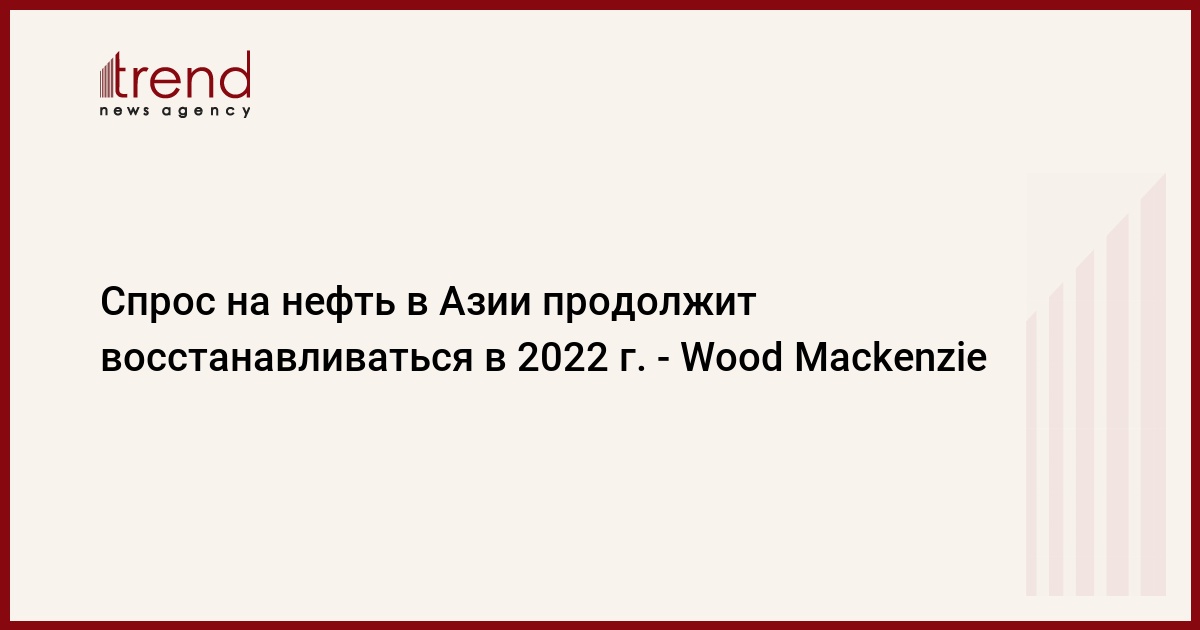 БАКУ /Trend/ - Согласно прогнозам международной консалтинговой компании Wood Mackenzie, спрос на нефть в Азии продолжит восстанавливаться в 2022 году после роста почти на семь процентов в 2021-м, сообщает во вторник Trend со ссылкой на компанию.