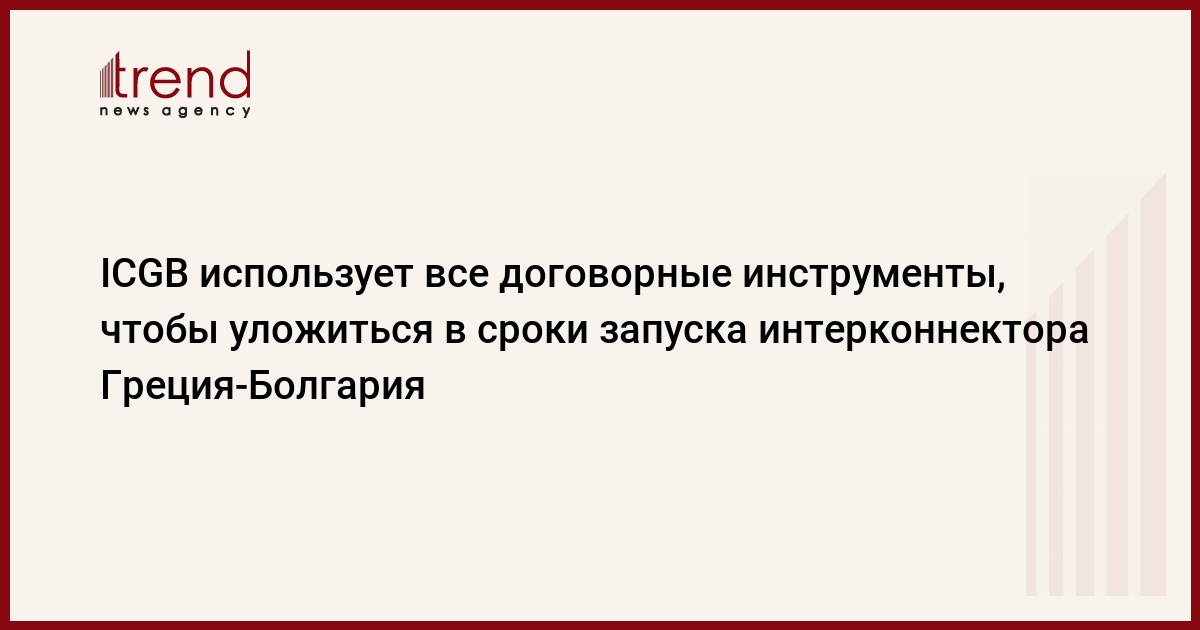 БАКУ /Trend/ - Совет директоров ICGB AD, проектной компании по строительству интерконнектора Греция-Болгария (IGB), единогласно принял решение использовать все договорные инструменты для ускорения деятельности компании AVAX, чтобы завершить работу по EPC-контракту и обеспечить передачу заказчику контрактной территории в ближайшие несколько месяцев с целью ввода объекта в эксплуатацию в июле 2022 года, как и планировалось изначально, сообщили Trend в ICGB AD.