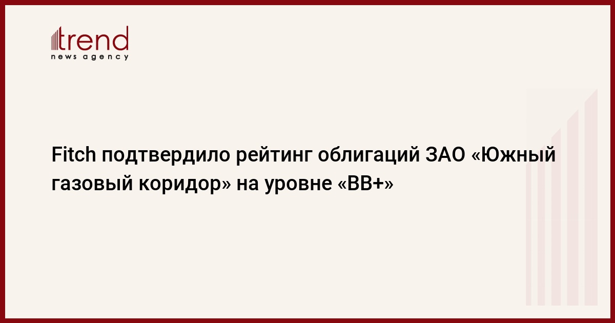 БАКУ/Trend/ - Международное рейтинговое агентство Fitch Ratings подтвердило долгосрочный рейтинг еврооблигаций ЗАО «Южный газовый коридор» (ЮГК) в иностранной валюте на уровне «BB+», сообщает в понедельник Trend со ссылкой на агентство.