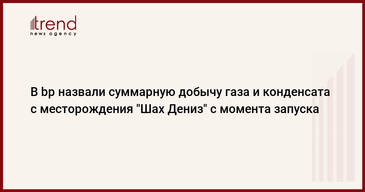 БАКУ /Trend/ - С месторождения «Шах Дениз» в азербайджанском секторе Каспия с начала его эксплуатации и до конца 2021 года было добыто около 156 миллиардов кубометров газа и около 36 миллионов тонн конденсата, передает Trend со ссылкой на bp.