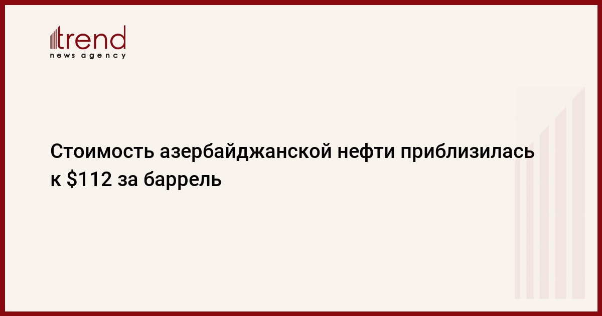 БАКУ /Trend/ - Цена на азербайджанскую нефть марки Azeri Light на базе CIF в итальянском порту Аугуста 1 марта выросла на 9,6 доллара по сравнению с предыдущим показателем и составила 111,9 доллара за баррель, сообщает в среду Trend со ссылкой на источник на нефтегазовом рынке страны.