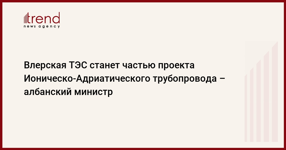 БАКУ /Trend/ - Проект возрождения Влерской тепловой электростанции (ТЭС) стал региональным, поскольку он будет составной частью крупного проекта Ионическо- Адриатического трубопровода (IAP).