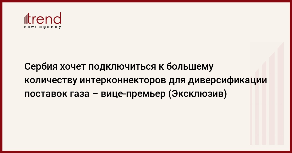 БАКУ /Trend/ - У Сербии есть два маршрута поставок природного газа — из Венгрии и Болгарии, и следующим шагом будет диверсификация поставщиков.