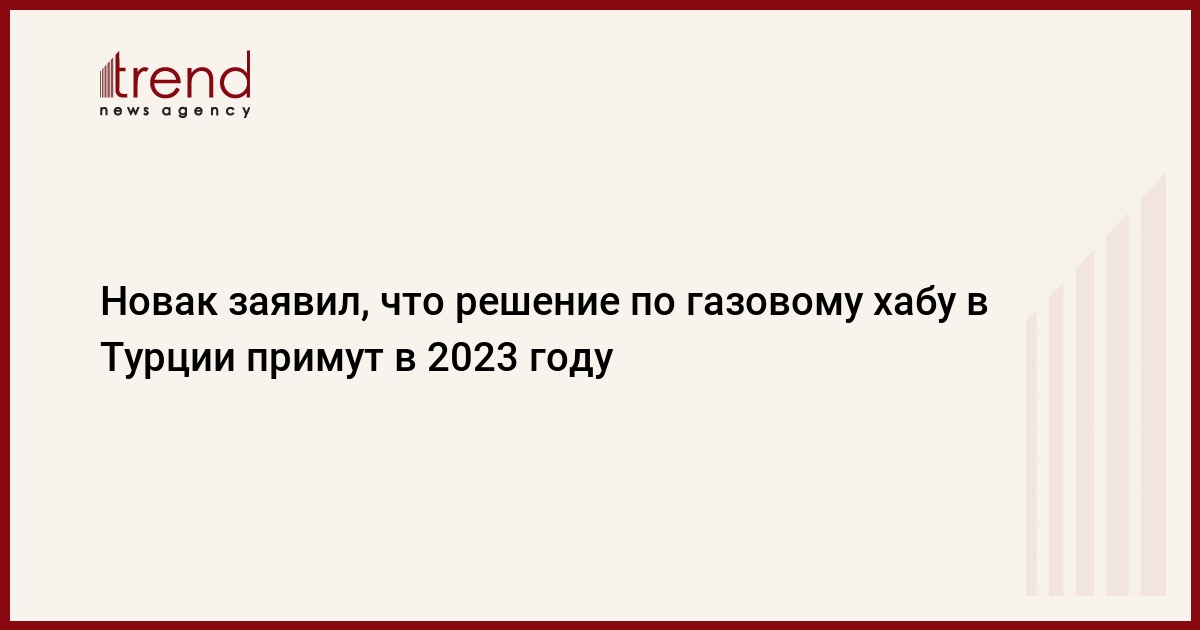 По словам вице-премьера, решения по газовому хабу в Турции будут приняты в течение 2023 года.