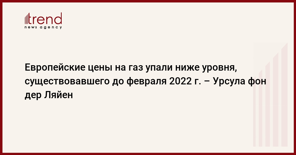 БАКУ /Trend/ - Цены на газ в Европе упали ниже уровня, существовавшего до 24 февраля 2022 года.