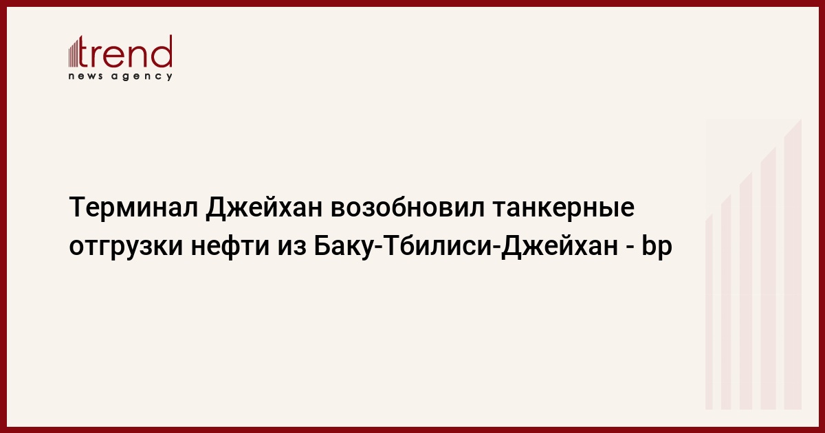 БАКУ/Trend/- С сегодняшнего дня (12 февраля) возобновлены танкерные отгрузки нефти из трубопровода Баку-Тбилиси-Джейхан на Джейханском терминале, сообщили Trend в воскресенье в bp Azerbaijan.