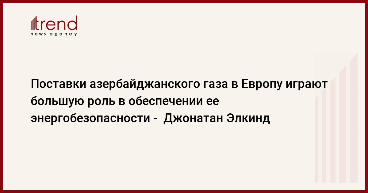БАКУ /Trend/ - Поставки азербайджанского газа в Европу играют большую роль в обеспечении ее энергетической безопасности.