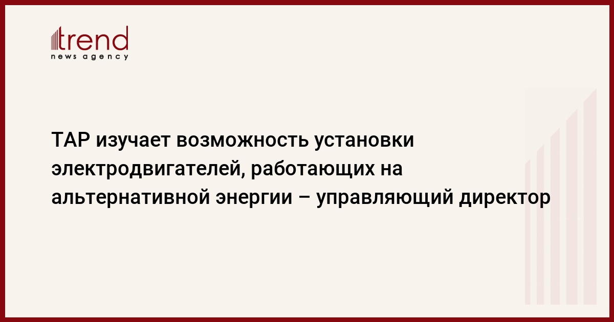 БАКУ/Trend/ - Консорциум Трансадриатического трубопровода (TAP) изучает возможность установки электродвигателей, работающих на возобновляемых источниках энергии, сказал в интервью Trend управляющий директор TAP Лука Скьепатти.