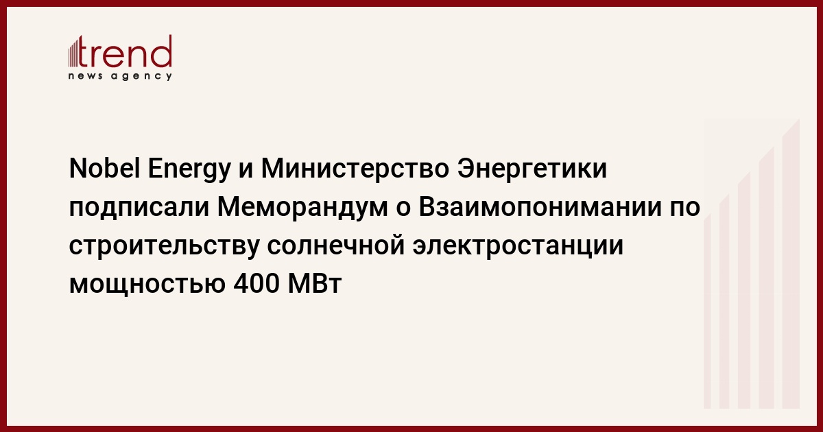 Меморандум о взаимопонимании был подписан со стороны заместителя Министра Энергетики Азербайджана г-ном Эльнуром Солтановым и со стороны генерального директора Nobel Energy Вугаром Самедли, на специальной церемонии «Зеленый энергетический потенциал Нахичевани и Восточного Зангезура», состоявшейся 3 июня в Нахичевани, Азербайджан.