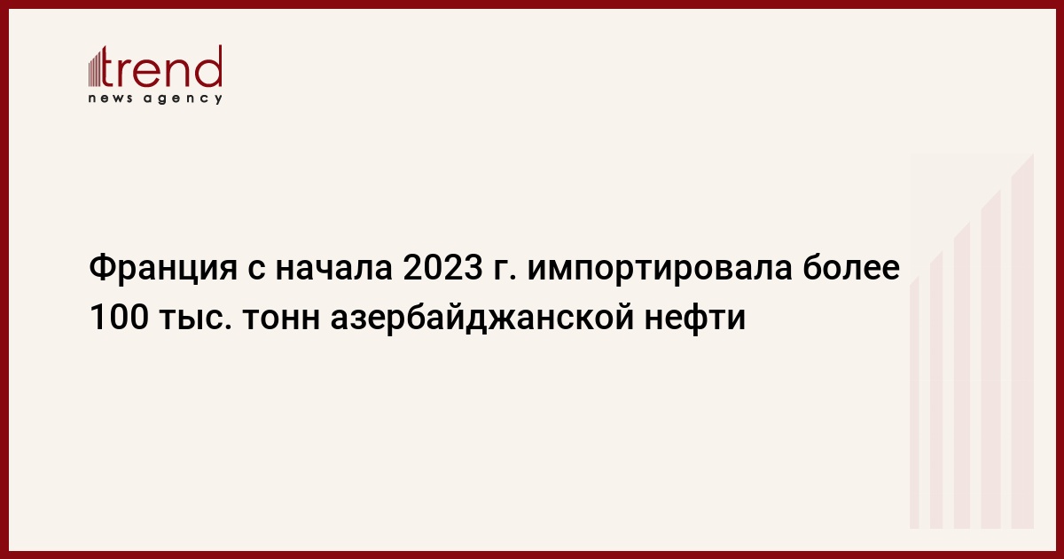 Как сообщает в пятницу Trend, в аналогичном периоде прошлого года Франция не импортировала азербайджанскую нефть.