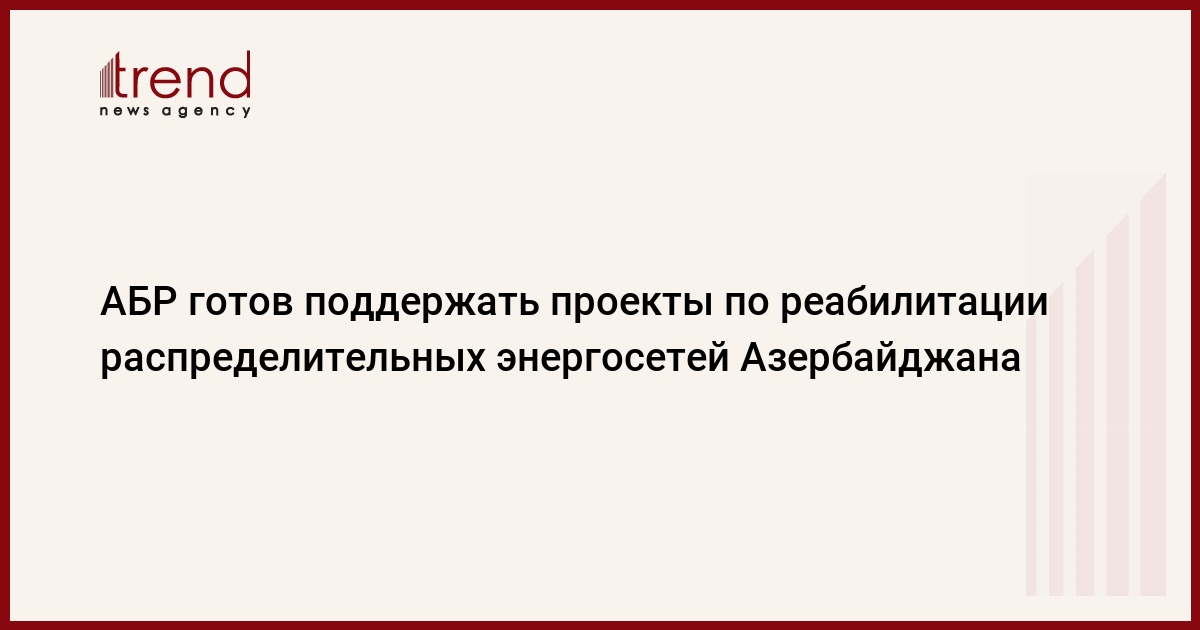 БАКУ /Trend/ - Азиатский банк развития (АБР), наряду с государственными, готов поддержать частные проекты по реабилитации распределительных энергосетей Азербайджана, сообщает в среду Trend.