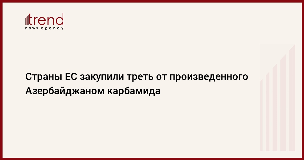 БАКУ /Trend/ - Из общего объема произведенного в 2023 году в Азербайджане карбамида треть была экспортирована в страны ЕС, сообщает в четверг Trend со ссылкой на данные "Евростата".