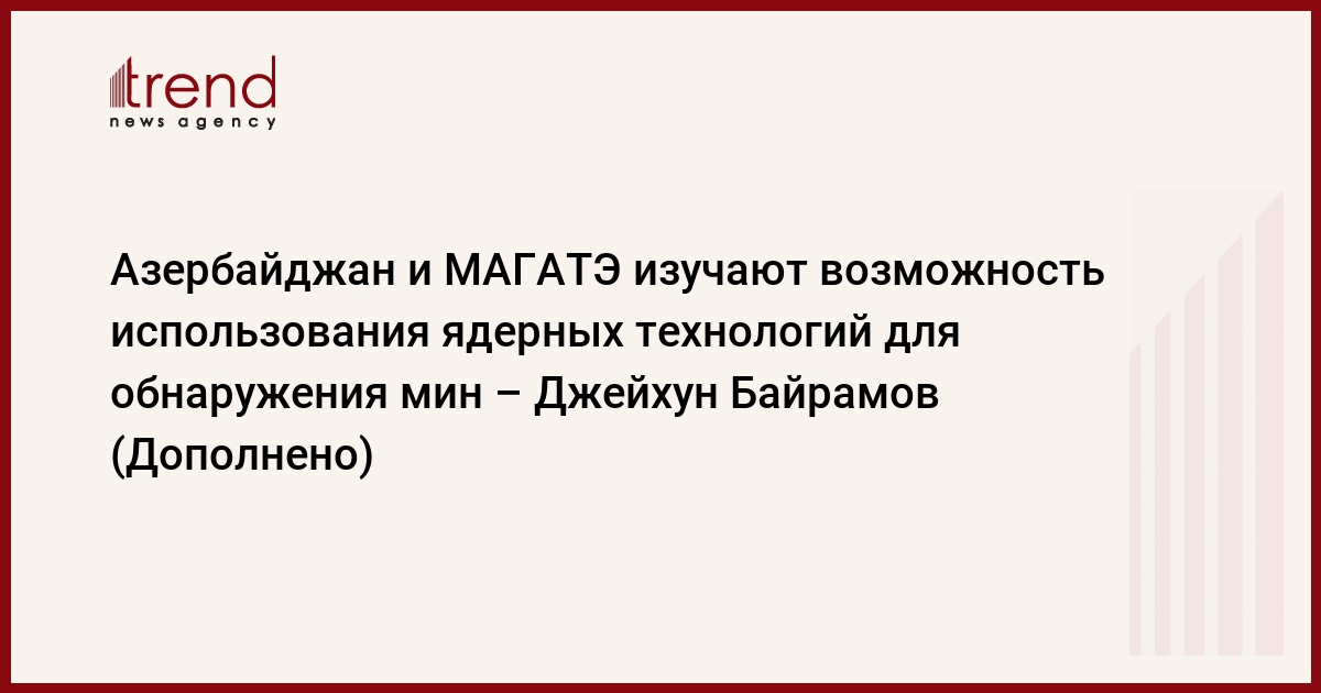 БАКУ/Trend/ - Азербайджан и Международное агентство по атомной энергии (МАГАТЭ) изучают возможность использования ядерных технологий для обнаружения мин.