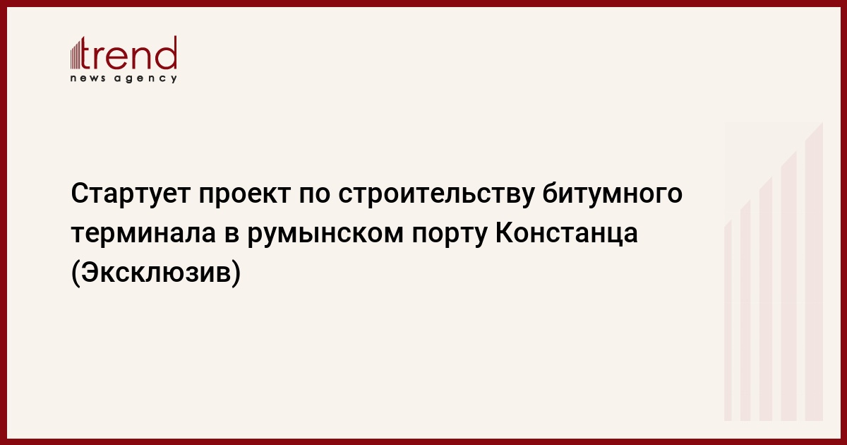 БАКУ /Trend/ — Международный трейдер "Euronova Energies" построит битумный терминал в румынском порту Констанца на территории "Oil Terminal SA", в связи с чем сегодня подписано соответствующее соглашение, сообщил эксклюзивно Trend в четверг информированный источник.
