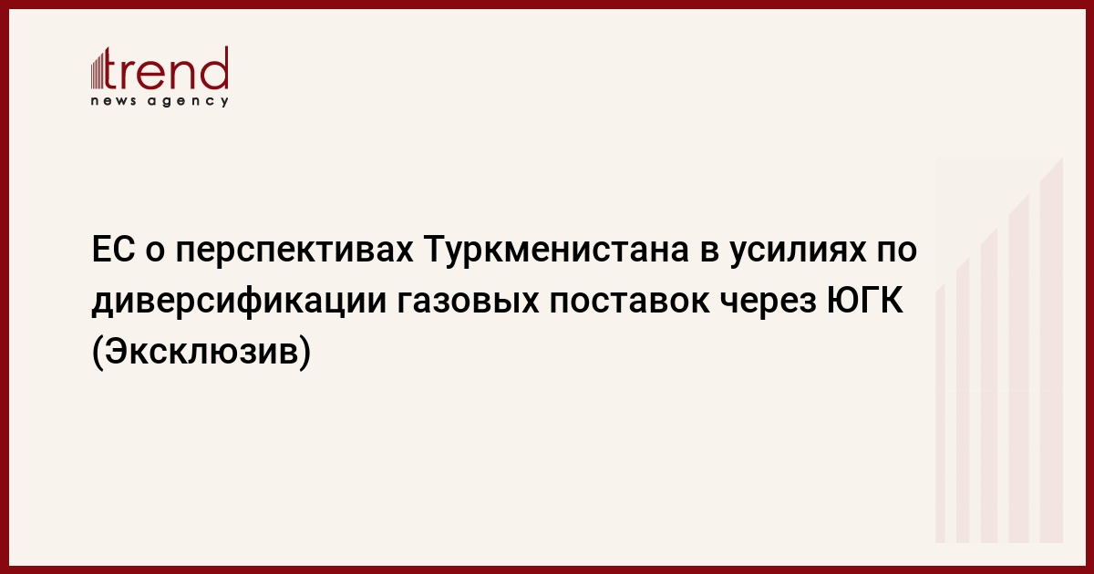 БАКУ /Trend/ - ЕС видит потенциальную роль Туркменистана в усилиях по диверсификации источников газа через Южный газовый коридор (ЮГК), сообщил эксклюзивно Trend источник в пресс-службе Европейской комиссии.