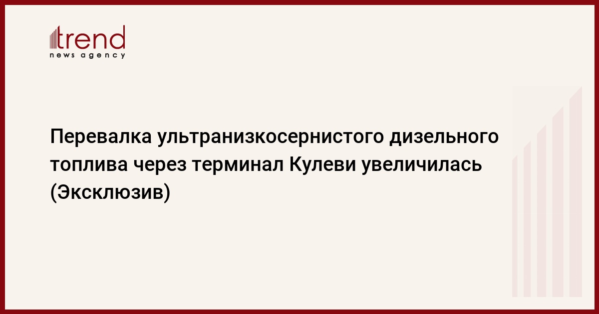 БАКУ/Trend/ - В 2024 году увеличился объем перевалки ультранизкосернистого дизельного топлива азербайджанского происхождения через терминал Кулеви, сказали в ответ на запрос Trend в государственной нефтяной компании Азербайджана (SOCAR).