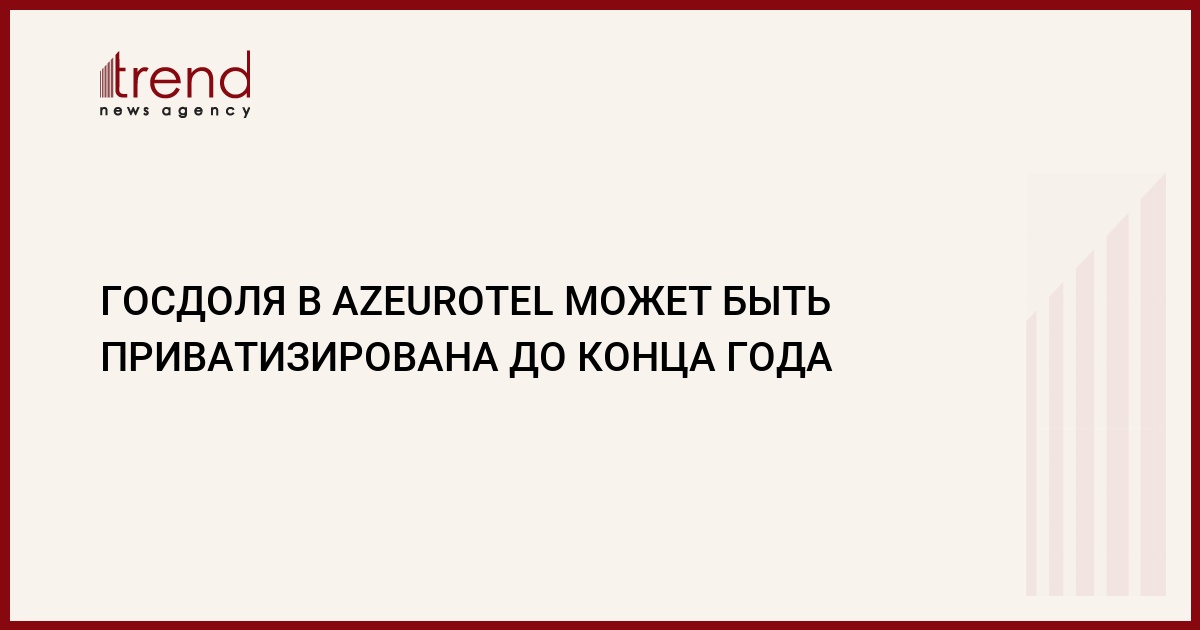 Правительство Азербайджана не исключает возможности, что до конца текущего года на приватизацию может быть выставлено СП AzEuroTel. Как сообщили Trend в правительстве, в текущем году в секторе связи Минэкономразвития планирует в первую очередь приватизировать предприятия, в которых у государства лишь определенная доля, то есть совместные предприятия, которыми являются Azercell и AzEuroTel. При этом на данный момент ведется оценка доли государства в Azercell.