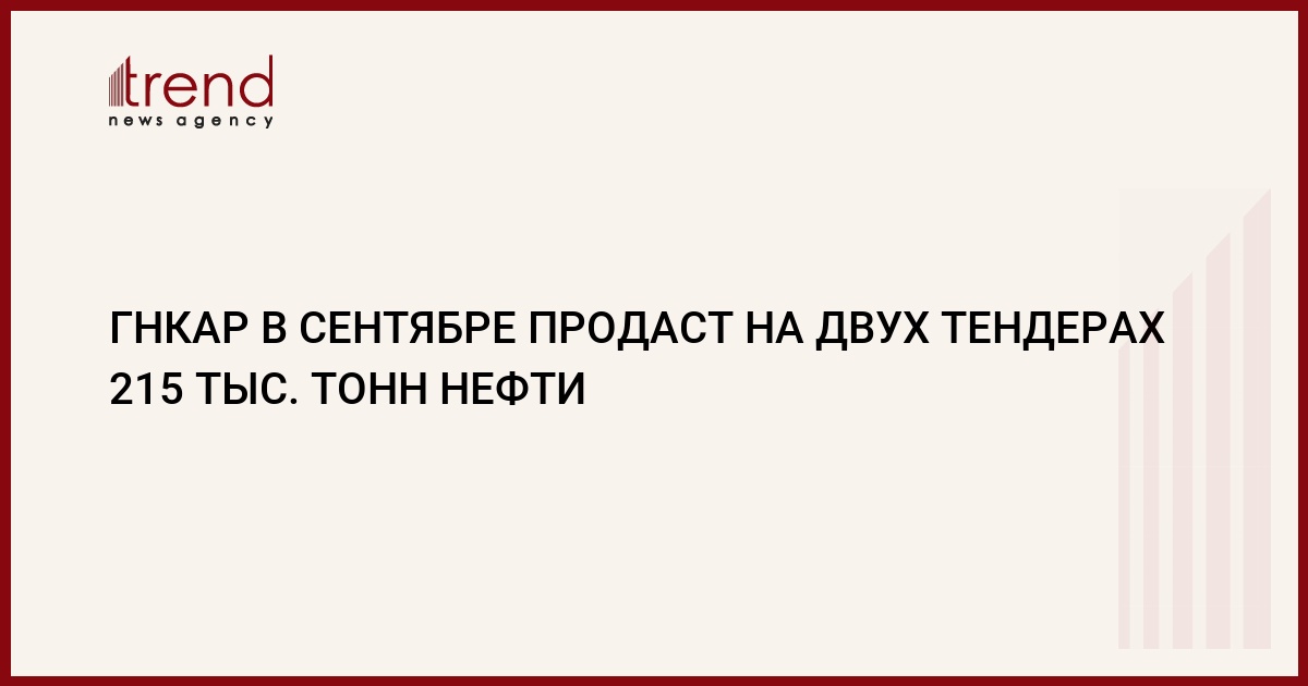 По словам представителя Госнефтекомпании, тендер на продажу этой партии будет объявлен в первой декаде сентября.
