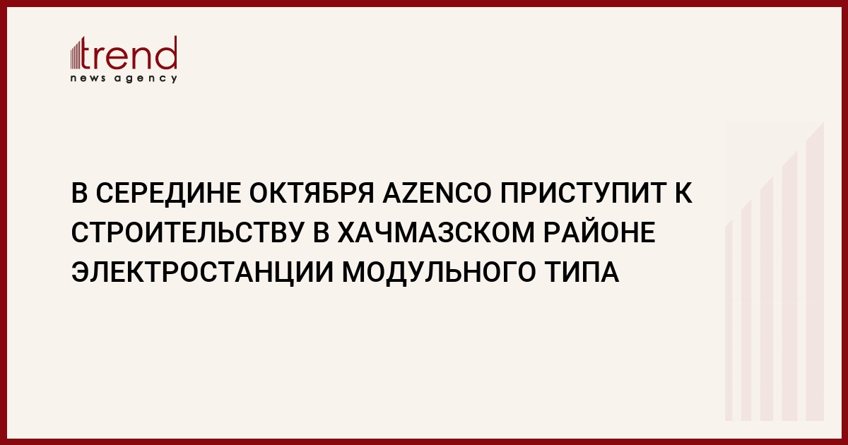 В середине октября ремонтно-строительная компания AZENCO намерена приступить к работам в рамках строительства в Хачмазском районе электростанции модульного типа. Как сообщили Trend в пресс-службе АО Azerenerji, по словам директора AZENCO Ахмедия Шахгусейнова, в настоящее время работы находятся первичной стадии. Экспертами проводится мониторинг территории для определения координат будущей модульной станции мощностью 87 МВт.
