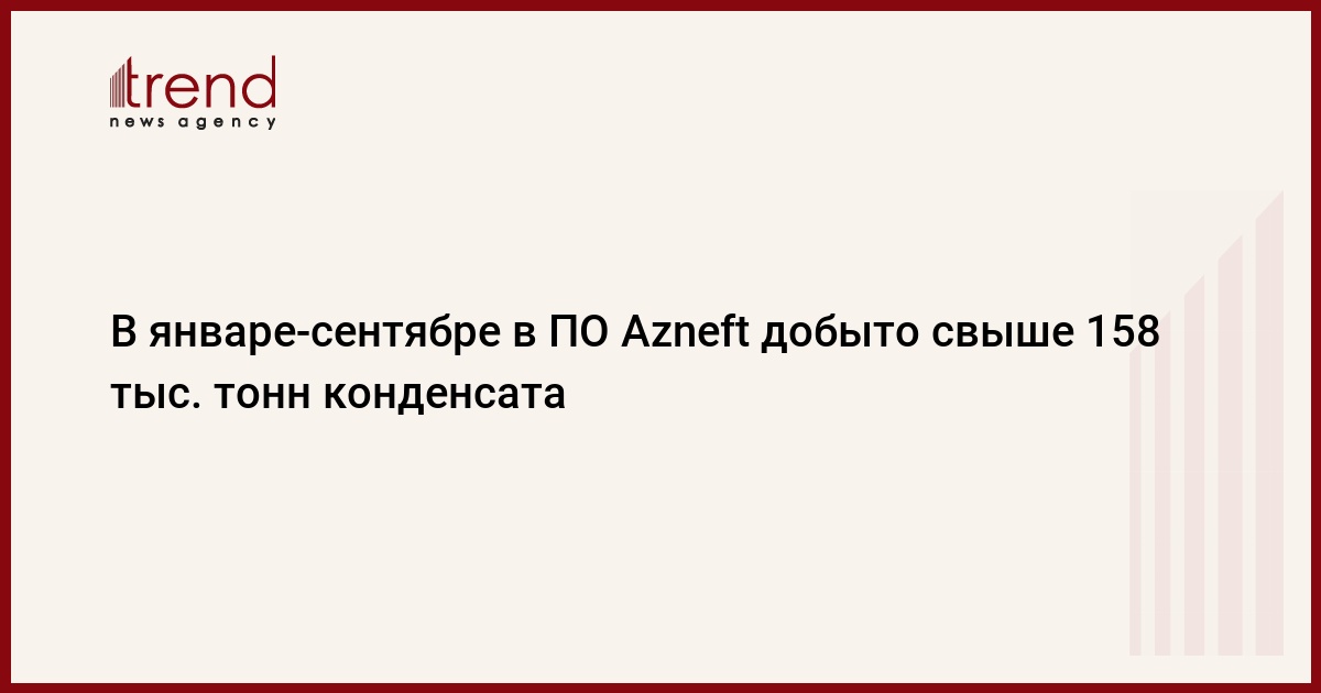В ГHКАР отметили, что в сентябре HГДУ добыли 19,923 тыс. тонн конденсата, что на 229 тонн больше августа. В том числе, HГДУ 28 Маy добыло 15,53 тыс. тонн, HГДУ N.Narimanov - 3 тыс. тонн, Qum Adasi - 0,408 тыс. тонн, Bulla Deniz - 0,985 тыс. тонн.