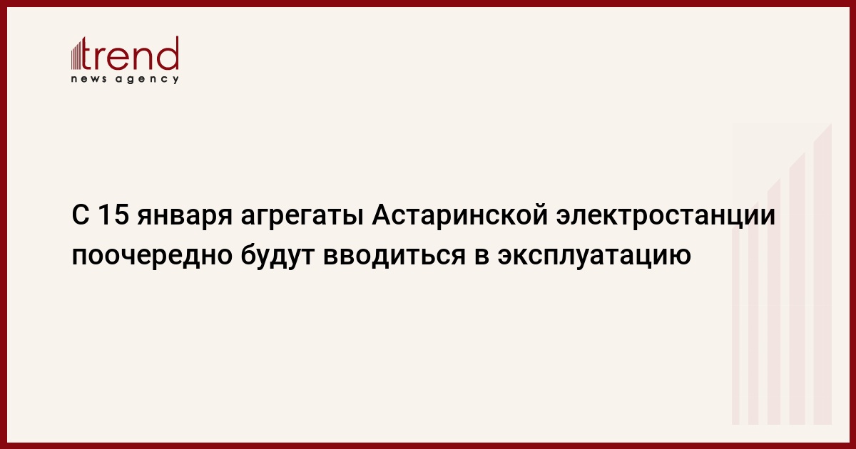 Hачиная с 15 января агрегаты на Астаринской электростанции модульного типа поочередно будут вводиться в строй, сообщил Trend вице-президент АО Azerenerji Марлен Аскеров.