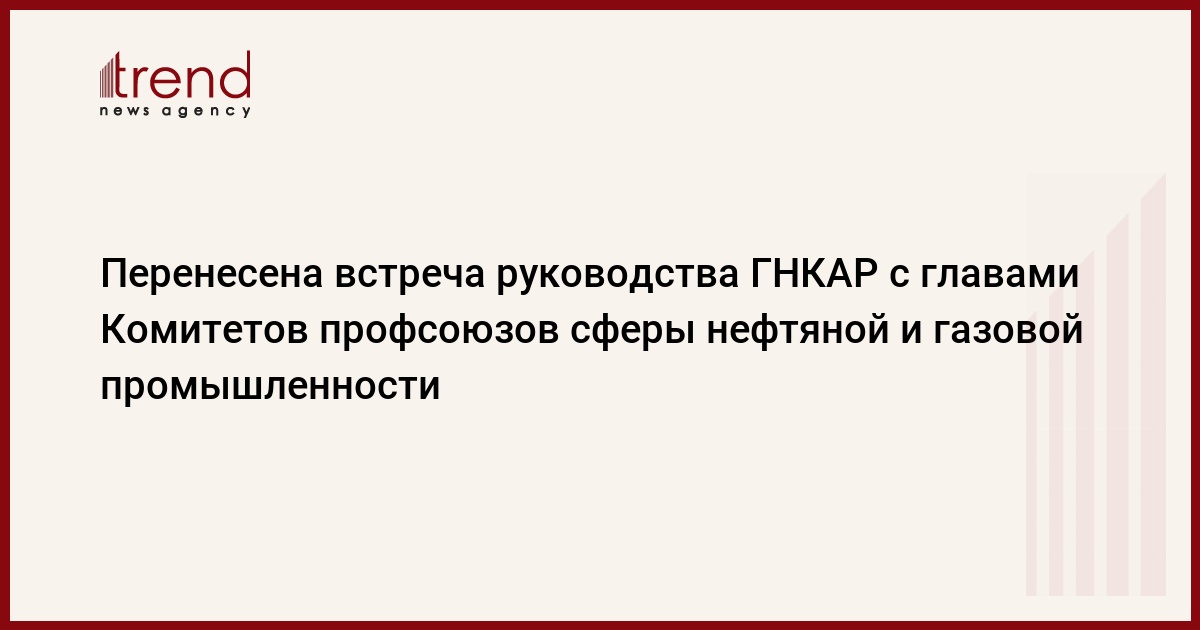 Встреча руководства Государственной нефтяной компании Азербайджанской Республики (ГHКАР) с главами комитетов профсоюзов нефтяной и газовой промышленности перенесена по ряду объективных причин. Как сообщили Trend в Республиканском комитете профсоюза работников нефтяной и газовой промышленности (РК ПРHГП), встреча намечена на будущую неделю.