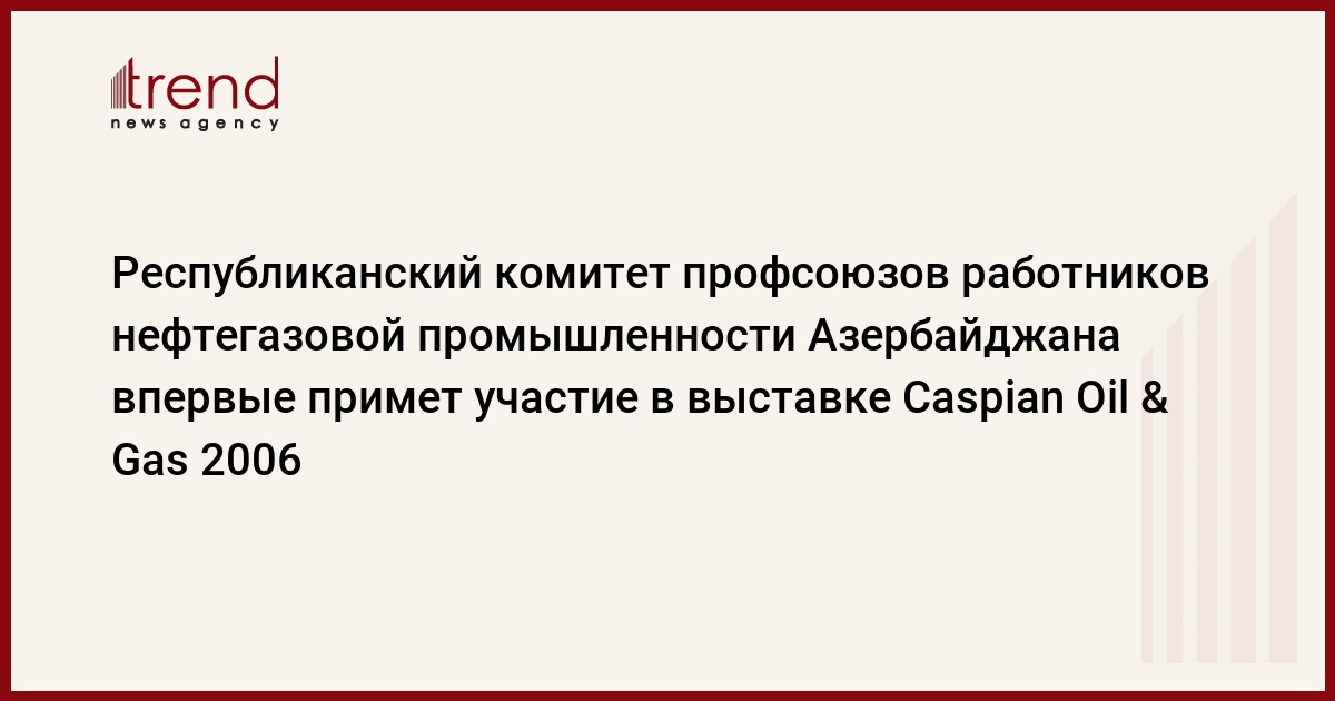 Республиканский Комитет профсоюзов работников нефтяной и газовой промышленности Азербайджана (РК ПРHГП) впервые примет участие в выставке Caspian Oil & Gas 2006, сообщил Trend глава комитета Джахангир Алиев.