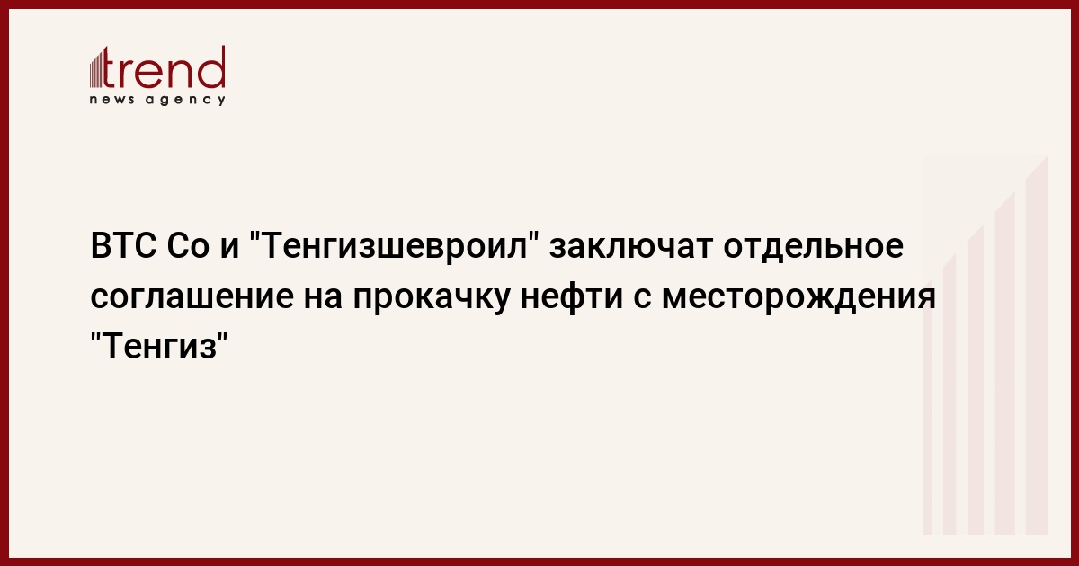 Американская ChevronTexaco, возглавляющая консорциум "Тенгизшевроил", занимающийся добычей нефти на крупном казахстанском месторождении "Тенгиз", предположительно будет прокачивать по трубопроводу BTC по 75 тыс. барр. нефти в сутки. Как передает Trend , об этом заявил сегодня на пресс-конференции глава BP Azerbaijan Дэвид Вудворд. BP оператор трубопроводной компании BTC Co.
