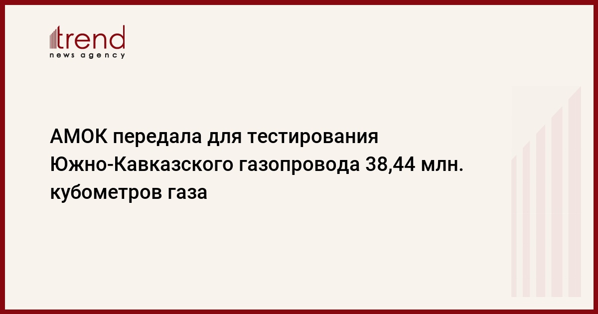 В августе азербайджанская международная операционная компания (АМОК) добыла и передала для осуществления работ на Южно-Кавказском экспортном газопроводе (ЮКТ) 0,94 млн. м3 газа, сообщили Trend в ГHКАР. Всего в течение четырех месяцев (передача газа началась с мая) было передано 38,44 млн. куб метров газа.