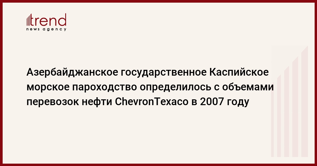 Азербайджанское государственное Каспийское морское пароходство (КАСПАР) имеет на следующий год контракт на перевозку нефти компании ChevronTexaco, занимающейся добычей нефти на крупном казахстанском месторождении "Тенгиз". Об этом, как передает Trend , заявил начальник пароходства Айдын Баширов.
