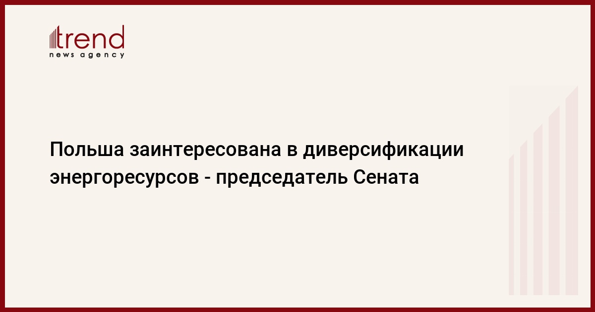 Польша заинтересована в диверсификации энергоресурсов, поступающих в страну. Об этом, как передает Trend , заявил 9 ноября на пресс-конференции по итогам визита в Азербайджан председатель Сената Польши Богдан Борусевич.