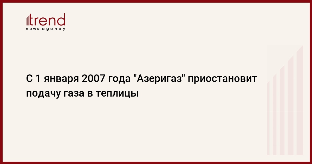 Начиная с 1 января 2007 года будет приостановлена подача газа в теплицы. Как передает Trend об этом журналистам сообщил президент ЗАО "Азеригаз" Алихан Меликов.