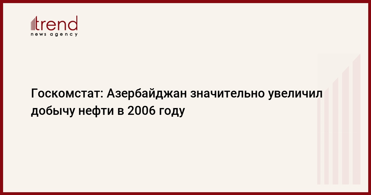 В 2006 году в Азербайджане добыто 32,26 млн. тонн нефти. Об этом, как передает Trend , сообщили в Государственном статистическом комитете Азербайджана. Этот объем больше по отношению к 2005 году на 45,3%.