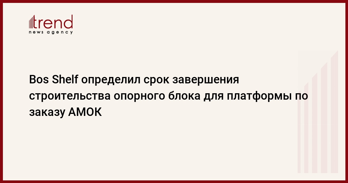 Компания Bos Shelf - контрактор ВР по проекту "Азери"-"Чираг"-"Гюнешли" завершит строительство опорного блока платформы для добычи, дожима газа и нагнетания воды с инженерно-техническими системами в конце февраля - начале марта 2007 года, передает Trend . Его отправка в море для установки предполагается в июне этого года.