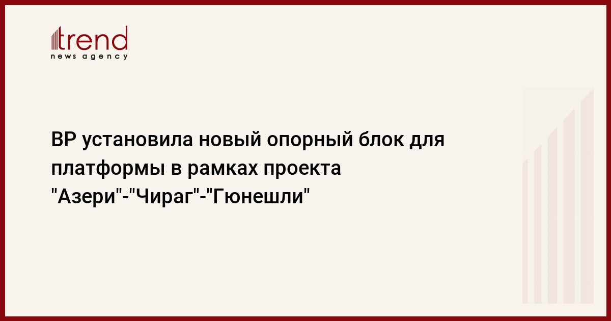 Азербайджан, Баку / Trend / Азербайджанская международная операционная компания (АМОК) установила опорный блок платформы для бурения с инженерно-техническими системами и жилблоками (ПБЖ) на "глубоководном Гюнешли" (ГВГ). Эти работы были осуществлены в рамках Фазы-3 полномасштабной разработки месторождений "Азери"-"Чираг"-"Гюнешли", сообщили в среду в ВР (оператор проекта). Работы по полной установке опорного блока завершатся через 45 дней.